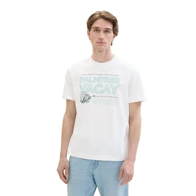 Classic T-shirt ribbed cuffs on the collar. With various text and palm prints on the chest Fit: regular fit, back length for size L approx. 74 cm Short sleeves with crew neck, ideal for spring, summer and autumn Made from soft single jersey fabric