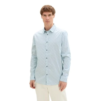 TOM TAILOR Men's 1042515 Tailliertes Satin Hemd mit Allover Print, 35803 Blue Squared Design, XXL