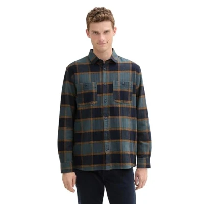 TOM TAILOR Men's 1043798 Comfort fit Shirt in Check Pattern, 36635 Blue Navy, M