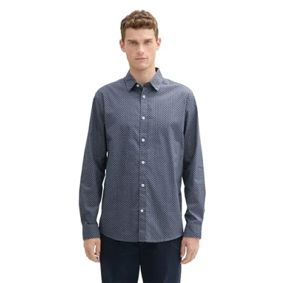 TOM TAILOR Men's 1043806 Regular fit Shirt with Pattern, 36667 Stormy Blue Fade Stripe Design, M