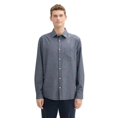 TOM TAILOR Men's 1043809 Shirt, 36677 Navy Diagonal Structure, XL