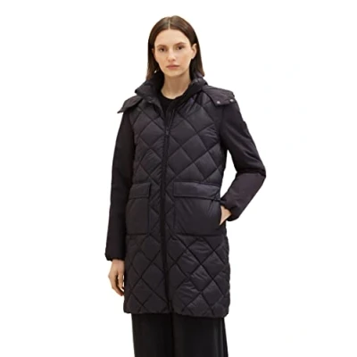 Long, quilted jacket in a material mix with a detachable hood, patch pockets on the front and an elasticated hem, with stand-up collar and drawstring on the hood, with two-way zip for more freedom of movement Fit: regular fit, back length for size M approximate 91 cm Ideal for putting on as a transitional jacket in spring and autumn With a bionic finish: water and dirt-repellent material lets water and liquids roll off, REPREVE: with sustainable, recycled polyester fibers from plastic bottles for a pleasant, light wearing comfort Washing instructions: no dry cleaning possible, tumble drying with reduced thermal load, no bleach allowed, iron at low temperature (110°C), gentle cycle at maximum 30°C