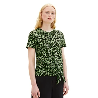 Patterned short sleeve t-shirt with knot detail at hem, with a round neckline Fit: regular fit, back length for size M approximate 55 cm Ideal for the following occasions: leisure, party, club, birthday, vacation, beach, hiking, concert Made from easy-care cotton-polyester mix for a comfortable fit Washing instructions: do not dry clean, do not tumble dry, no bleach allowed, iron at high temperature (200°C), machine wash max 40°C