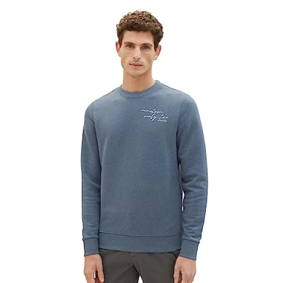TOM TAILOR Men's Basic Sweatshirt with Lettering Print, 11565 dusty Dark Teal Melange, XL