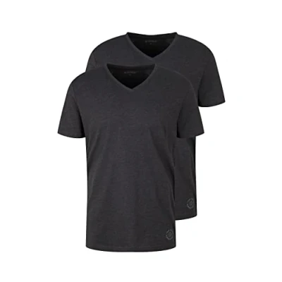 TOM TAILOR Men's Basic T Shirt in Double Pack with V neck 1008639, 11086 Dark Grey Melange, 3XL