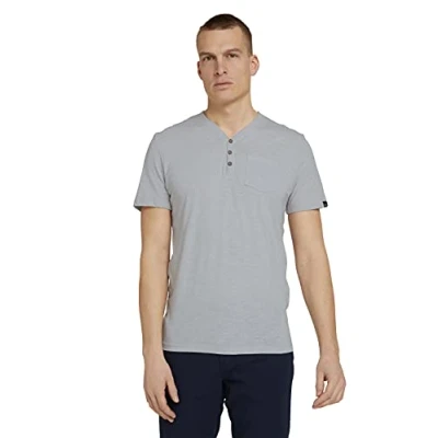 TOM TAILOR Men's Henley Mélange T Shirt 1026002, 21916 White Melange, S