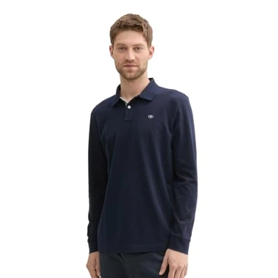 TOM TAILOR Men's Long Sleeved Basic Piqué Polo Shirt, 10668 Sky Captain Blue, XL