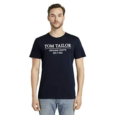 TOM TAILOR Men's Organic Cotton Logo Print T Shirt 1021229, 10668 Sky Captain Blue, 3XL