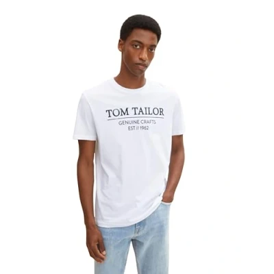 TOM TAILOR Men's Organic Cotton Logo Print T Shirt 1021229, 20000 White, 3XL