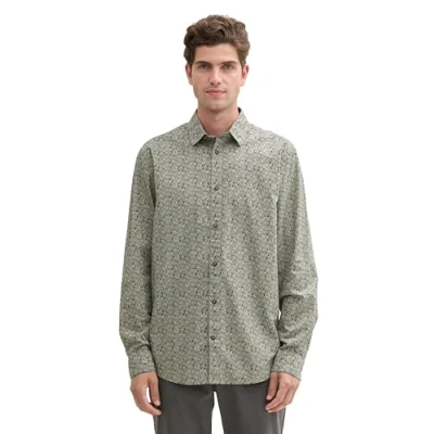 TOM TAILOR Men's Regular Fit Shirt with Pattern, 36705 Grass Green Triangle Design, 3XL