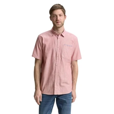 TOM TAILOR Men's Regular Fit Short Sleeve Cotton Shirt, 37918 Velvet Red Slub Structure, XXL