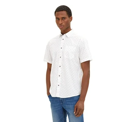 TOM TAILOR Men's Shirt 1034880, 31320 Off White Green Minimal Design, S