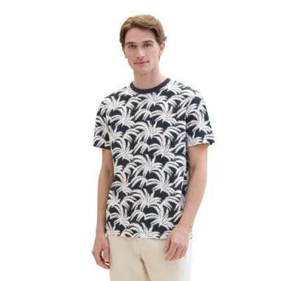 TOM TAILOR Men's T Shirt, 35412 Navy White Leaf Design, M