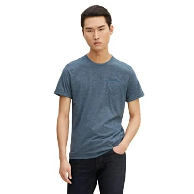 TOM TAILOR Men's T Shirt With Chest Pocket 1031635, 29817 Navy Blue Inject Neps, XXS