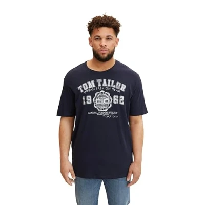 TOM TAILOR Men's T Shirt with Logo Print 1015876, 10690 Knitted Navy, 4XL Große Größen