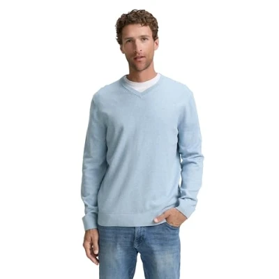 TOM TAILOR Men's 1039811 Pullover Sweater, 38676 Light Metal Blue Melange, L