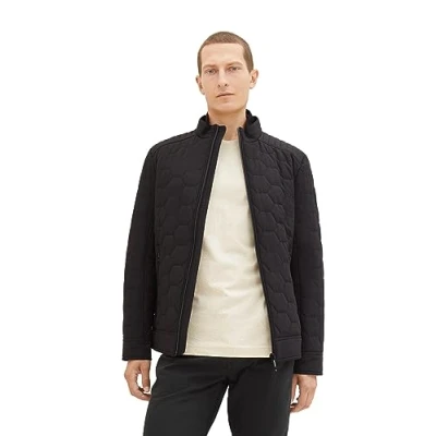 TOM TAILOR Men's Quilted Jacket with Stand up Collar in Biker Style, 29999 black, XXL