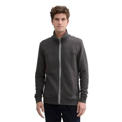 TOM TAILOR Men's Sweat Jacket with Stand up Collar 1021269, 11086 Dark Grey Melange, L