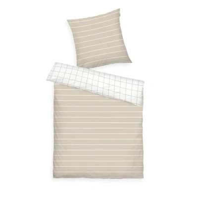 Modern look for the bedroom: high-quality renforcé bed linen in fresh and dynamic colours Mix and match: can be combined with other textiles from the collection, for a harmonious overall look in the bedroom Easy to clean at 60 °C and then tumble dry Loving details: woven label, coloured branded zip, can be combined with decorative cushions or a blanket for coordinated colour concepts Box contents: 1x TOM TAILOR Renforcé bed linen, check & stripes, colour: beige (Sunny Sand & Crisp White), size: 135 x 200 cm + 80 x 80 cm, material: 100% cotton, item no. 10047002050