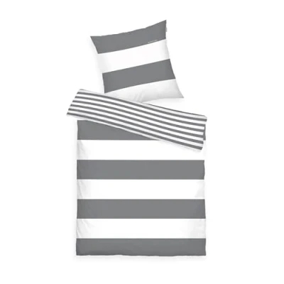 Timeless renforcé bed linen with reversible motif by Tom Tailor, with cover for duvet and pillows, attractive design for a fresh touch in the bedroom Varied reversible motif: wide stripes as an eye-catcher on the front, subtle and fine striped look on the back Loving details: woven label, branded zip, can be combined with matching fitted sheet Skin-friendly and easy-care: 100% breathable cotton, Oeko-Tex made in green, easy to clean in the washing machine at 60°C without loss of quality and suitable for tumble drying Box contents: 1x TOM TAILOR Renforcé bed linen, Siena, colour: grey/white, size: 155 x 220 cm + 80 x 80 cm, material: 100% cotton, item no. 10043003039