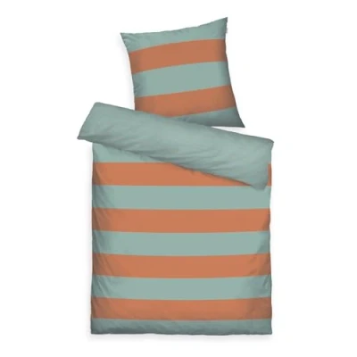 TOM TAILOR Renforcé Bettwäsche, 60 x 80 cm + 140 200 cm, 100% Baumwolle/Renforcé, mit Wendemotiv und farbigem Markenreißverschluss, BOLD STRIPES Orange, Türkis (Warm Coral & Fresh Sage)