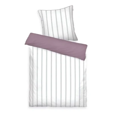 TOM TAILOR Satin Bed Linen 80 x cm + 135 200 cm, 100% Cotton/Satin, with Reversible Motif, Coloured Piping on Cushion and Branded Zip, Classic Stripes White, Purple (Cozy Mauve & Fresh