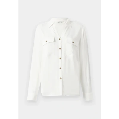 TOM Tailor Solid Buttondown blouse whisper white Sale at Zalando UK | Outer fabric material: 100% viscose | Sale order at Zalando UK! Size: 36. Color: Whisper white. Pattern: plain.