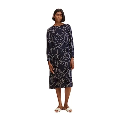 TOM TAILOR Women's 1032732 Dress, 30195 Navy Beige Abstract Design, 10