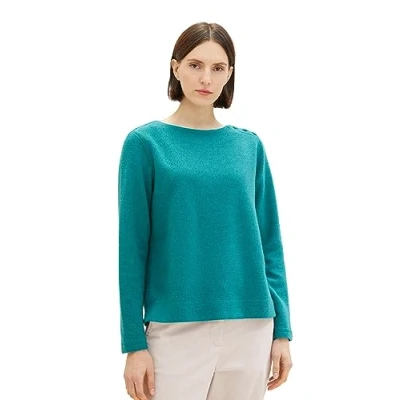 TOM TAILOR Women's 1034620 Sweatshirt with Button Placket, 32402 Ever Green Melange, XXL