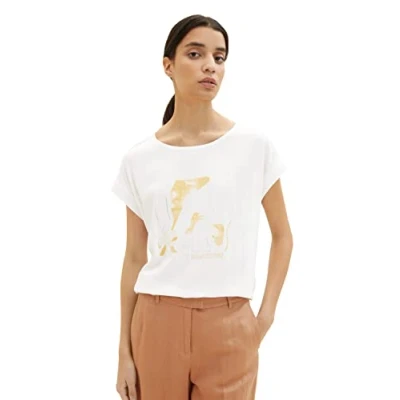 TOM TAILOR Women's 1036773 T Shirt with Print, 10315 Whisper White, S