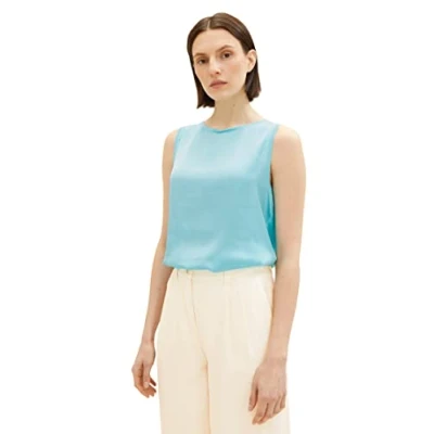 TOM TAILOR Women's 1036797 Basic top in Material Mix, 26007 Teal Radiance, Large
