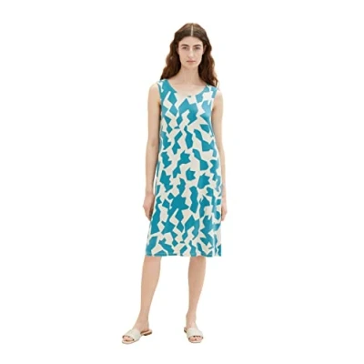 TOM TAILOR Women's 1036803 Basic Jersey Dress, 32146 Petrol Big Abstract Design, 8