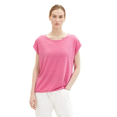 TOM TAILOR Women's 1037402 T Shirt with Structure, 31647 Nouveau Pink, L
