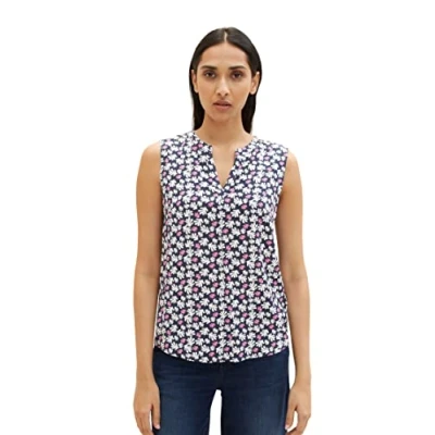 TOM TAILOR Women's 1037428 Blouse, 32814 Navy Round Leaf Design, 38
