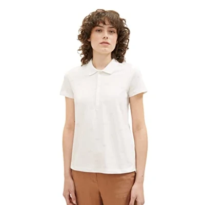TOM TAILOR Women's 1037493 Polo Shirt with Print, 32822 Offwhite Rose Flower Design, S