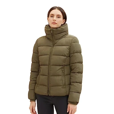 TOM TAILOR Women's 1037564 Quilted Jacket with Stand up Collar, 11848 jungle Soil Green, XXL