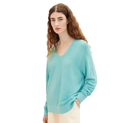 TOM TAILOR Women's 1037752 Basic Knitted Jumper with V Neck, 10426 Summer Teal, L