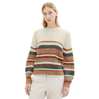 TOM TAILOR Women's 1037788 Pullover Sweater, 32444 Blush Multicolor Stripe, L