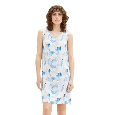 TOM TAILOR Women's 1037793 Basic Summer Dress with Pattern, 32135 Blue Shapes Design, 18