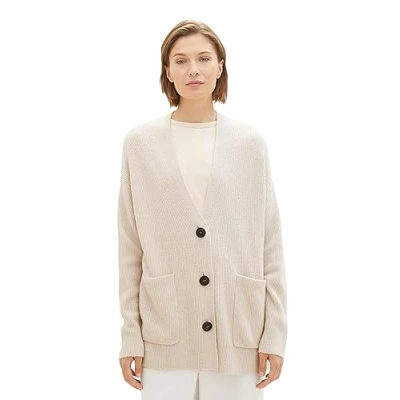 TOM TAILOR Women's 1038006 Cardigan Sweater, 32398 Clouds Grey Melange, L