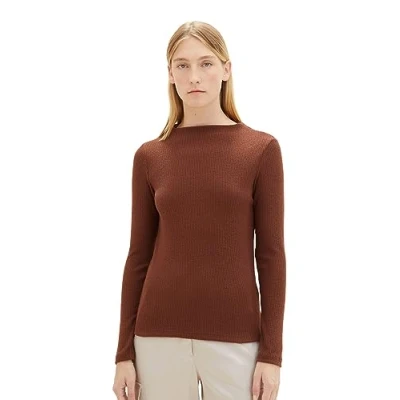 TOM TAILOR Women's 1038165 Long Sleeved T Shirt, 30337 Raisin, L