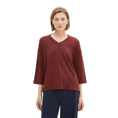 TOM TAILOR Women's 1038166 Basic T Shirt with 3/4 Sleeves and V Neck, 30337 Raisin, S