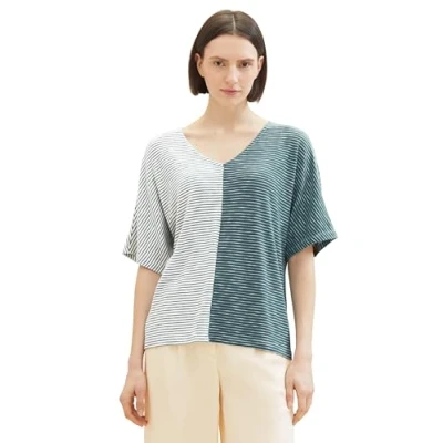 TOM TAILOR Women's 1040583 T Shirt, 34838 Green Offwhite Thin Stripe, Large