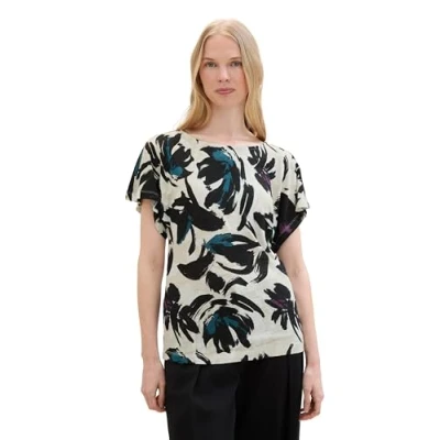 TOM TAILOR Women's 1041547 Batwing Sleeve t Shirt with All Over Print, 35285 Dark Blue Floral Design, XL