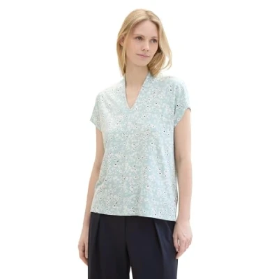 TOM TAILOR Women's 1041548 T Shirt, 35293 Blue Tiny Flower Design, M