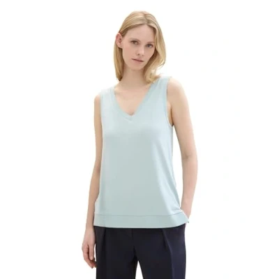 TOM TAILOR Women's 1041551 Basic Tank top with Ribbed Details, 30463 Dusty Mint Blue, S
