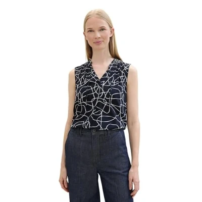 TOM TAILOR Women's 1042950 Blouse, 36380 Abstract Navy Lines Design, 6