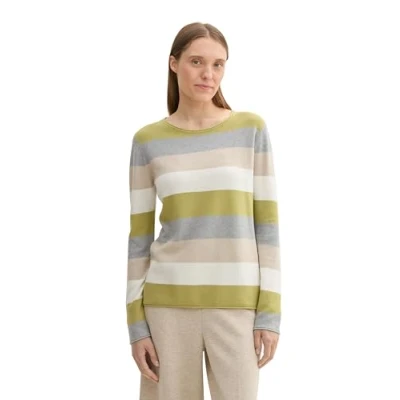 TOM TAILOR Women's 1042952 Pullover Sweater, 37067 Green Block Stripe, M