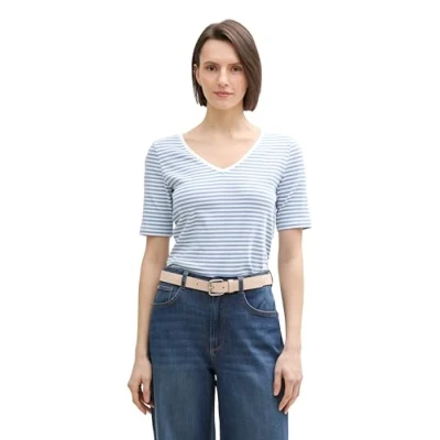 TOM TAILOR Women's 1045563 T Shirt, 37375 Flawless Blue Regular Stripe, XL