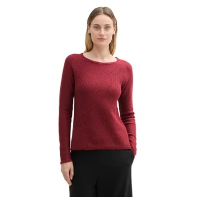 TOM TAILOR Women's 1045574 Basic Knitted Cotton Jumper, 35930 Deep Red, XXL